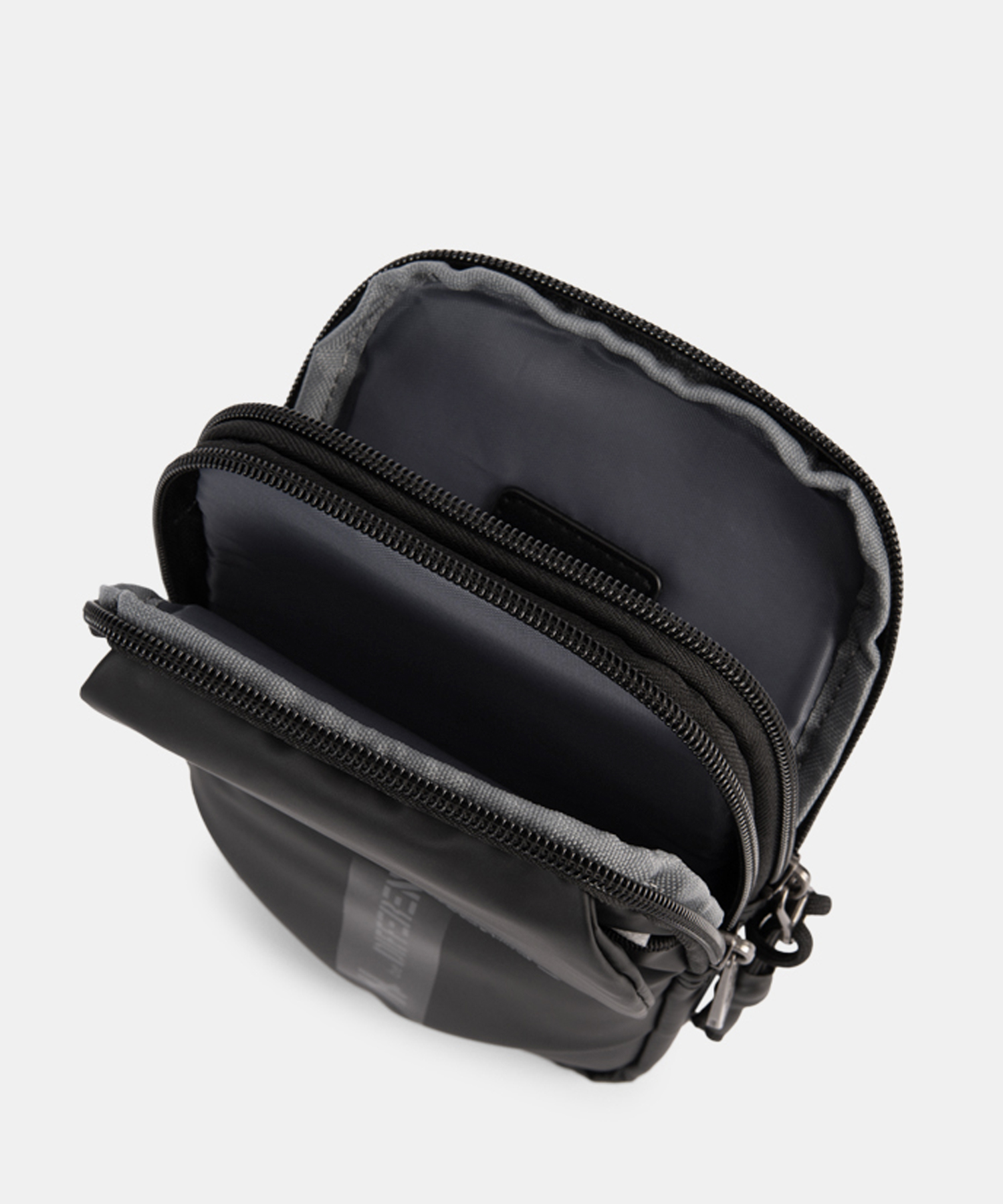 La distribución interior está pensada al milímetro: dos compartimentos principales con cremallera, forrados con tejido claro que facilita encontrar lo que necesitas. Ideal para llevar el móvil, tarjetas, llaves o pequeños esenciales del día.