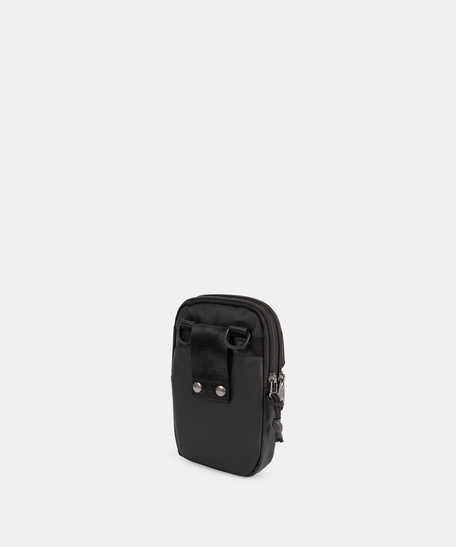 Dispone de una correa bandolera ajustable de cincha, perfecta para llevarlo cruzado o al hombro. En la parte trasera, incluye aros en D para engancharlo fácilmente a mochilas o cinturones, aumentando así sus posibilidades de uso.