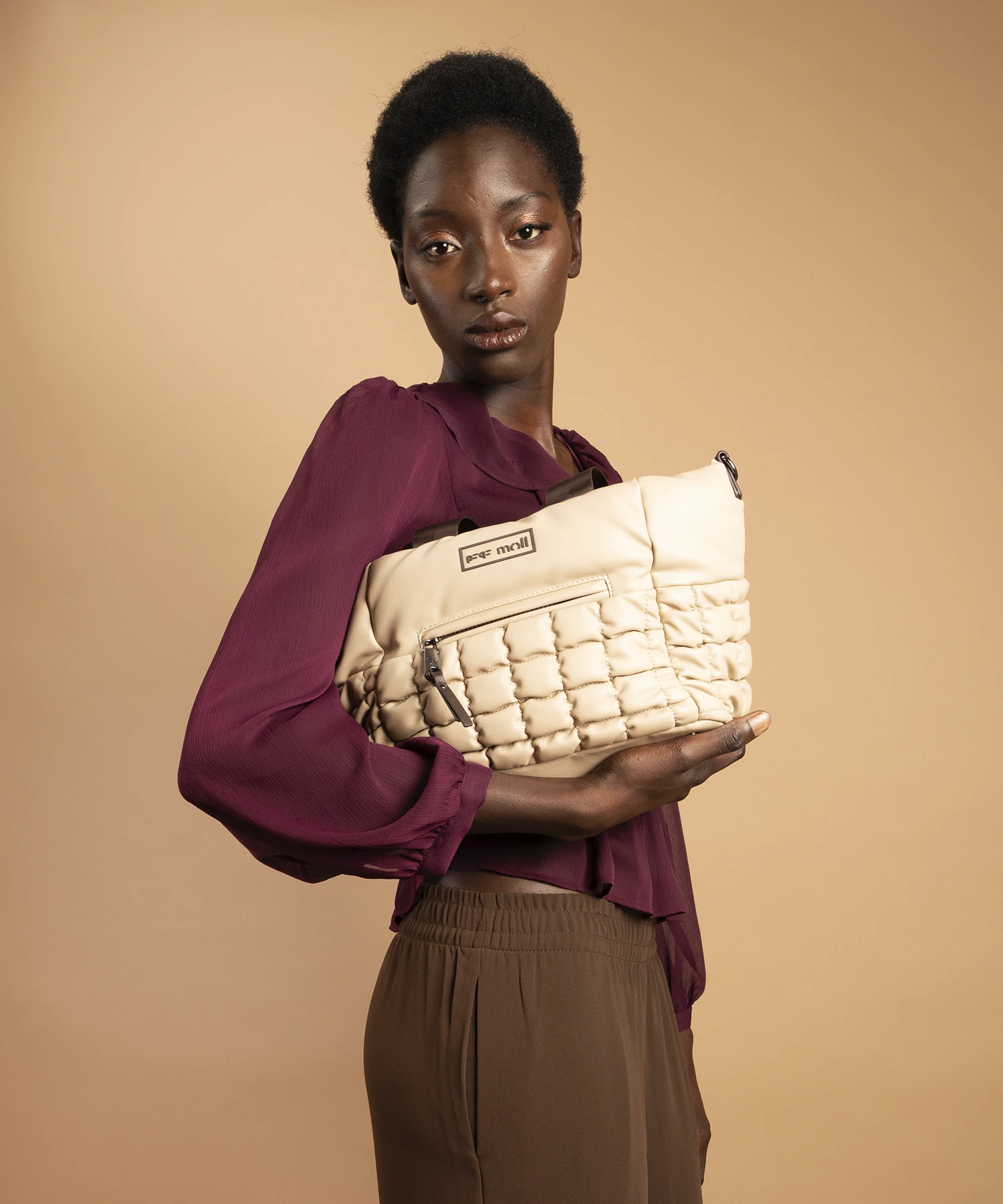 El cierre superior con cremallera mantiene tus pertenencias a salvo, y su color neutro lo convierte en el complemento ideal para cualquier temporada.