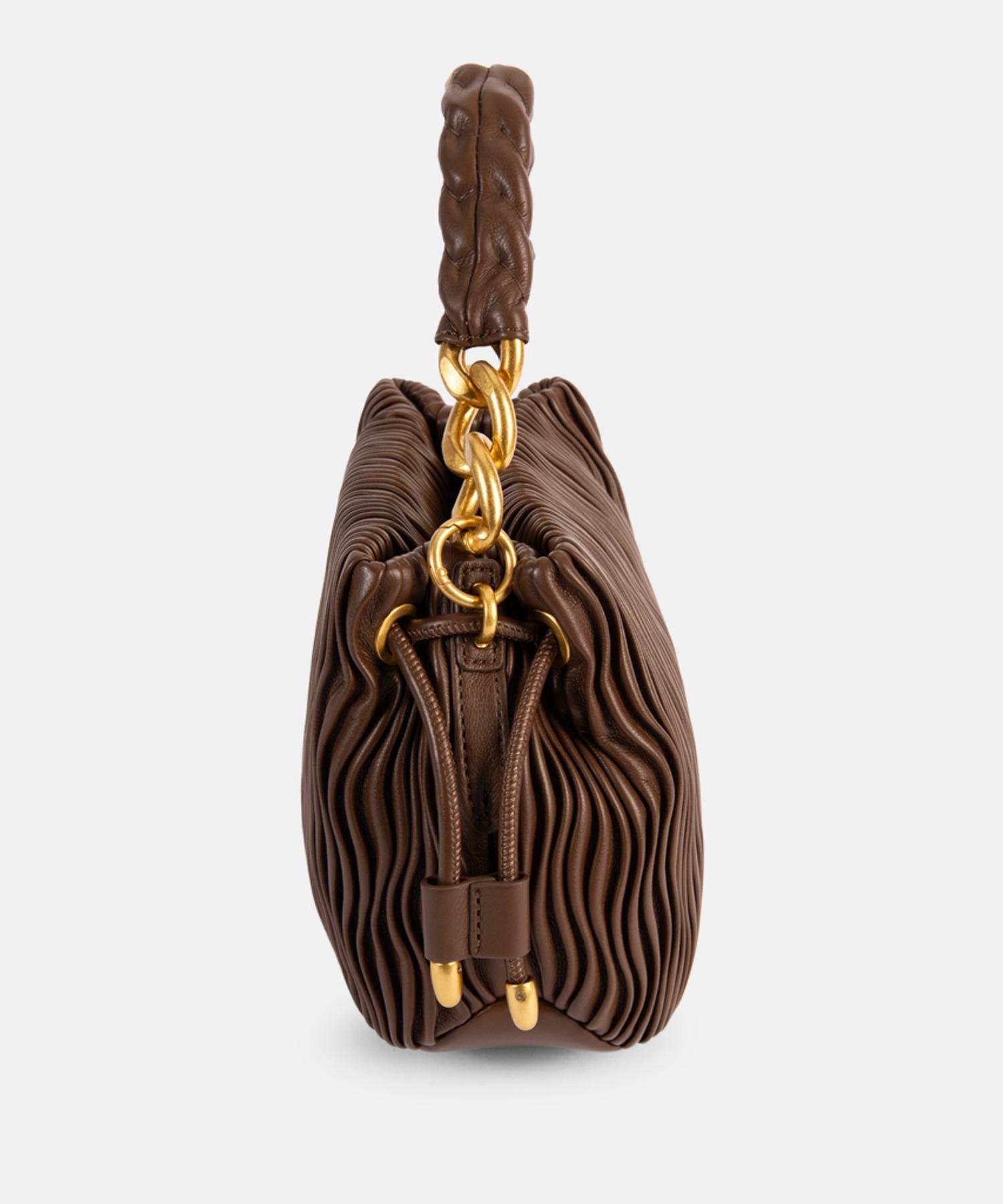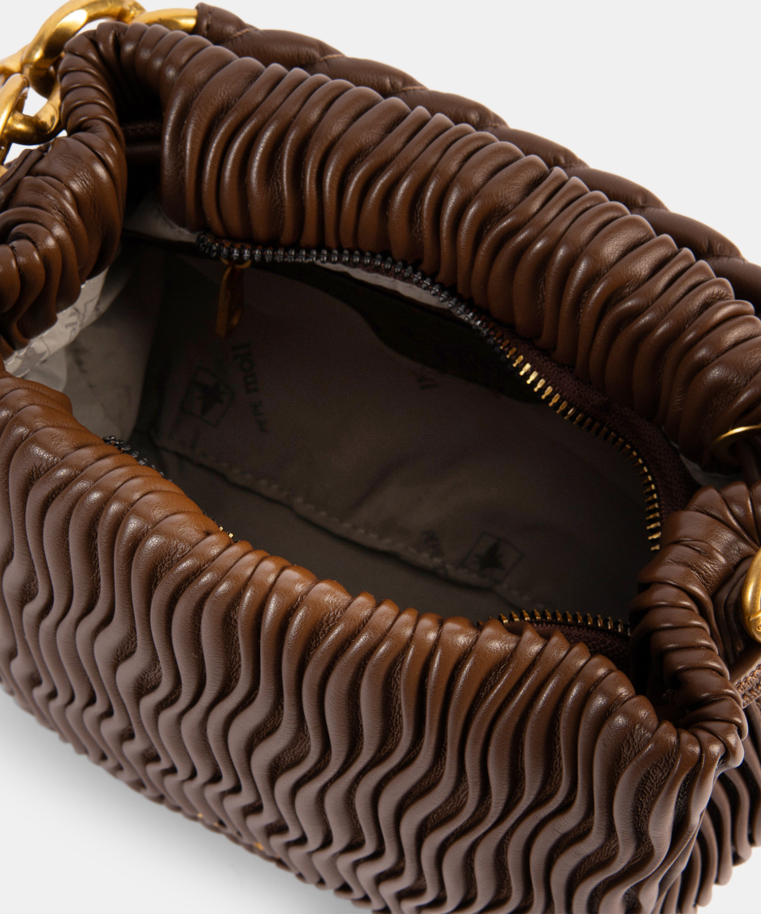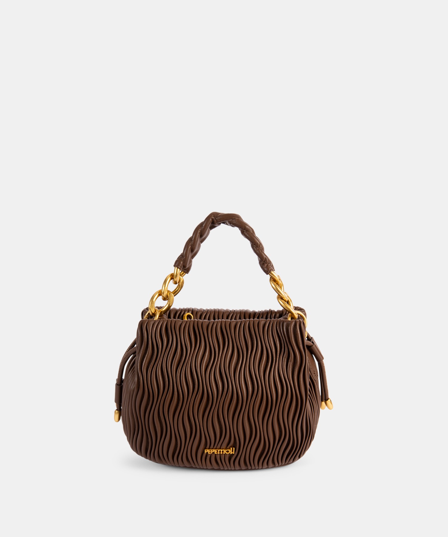 El bolso de mano 252261 de Pepe Moll es la mezcla perfecta entre diseño actual y detalles que marcan la diferencia. Su silueta tipo saco con efecto fruncido le da un aire relajado, mientras que su textura plisada vertical.