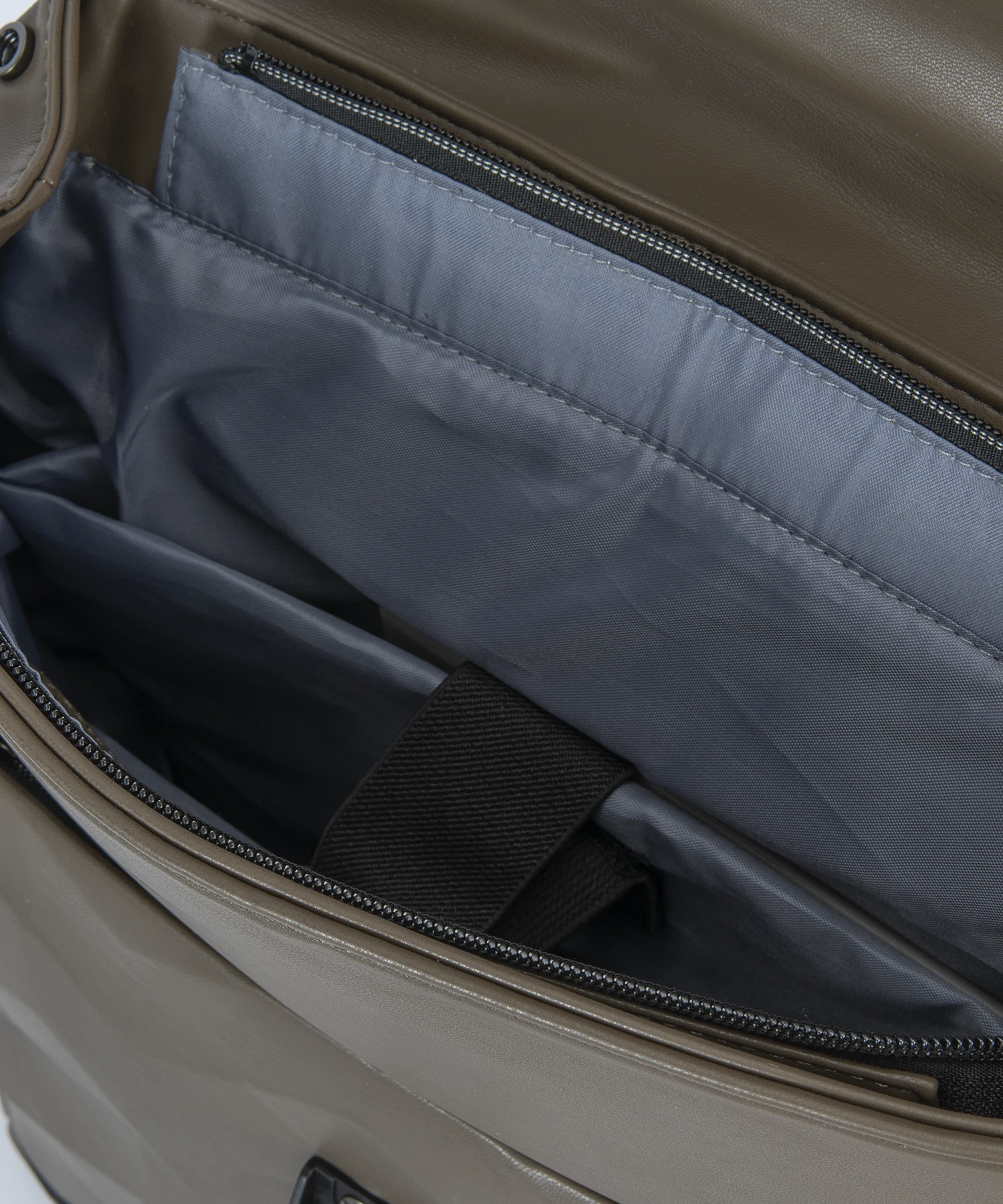Pensada para la comodidad, su espalda acolchada con tejido transpirable garantiza una experiencia de uso confortable incluso en trayectos largos. En el interior, el amplio compartimento revela un forro suave con tono claro y organización optimizada: compartimentos interiores, bolsillo con cremallera y una banda elástica de sujeción para portátil o tablet.