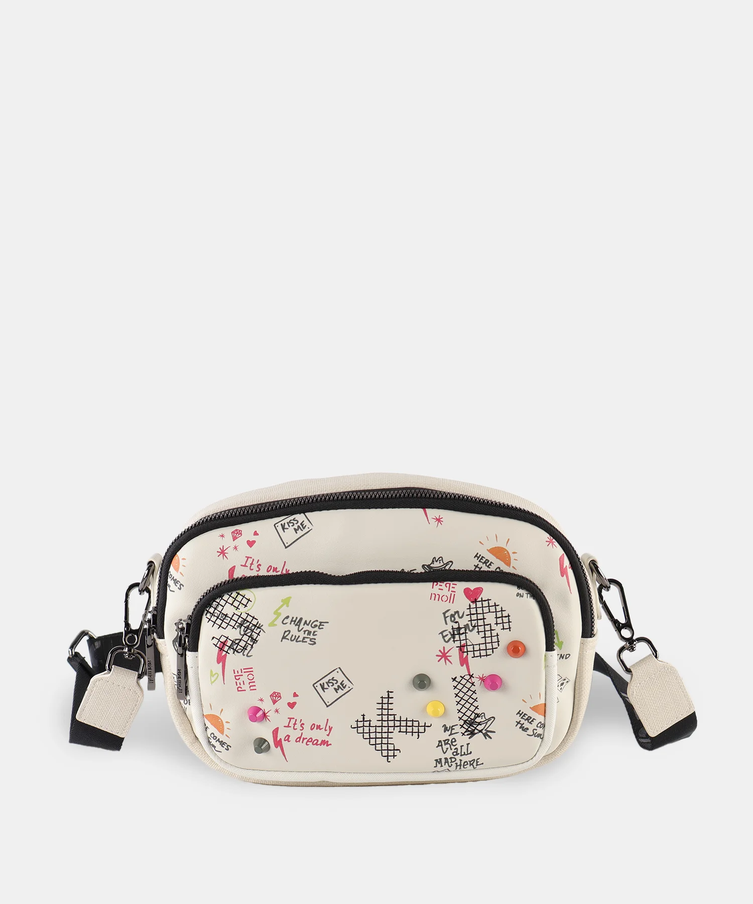 El bolso bandolera 261232 de Pepe Moll destaca por su carácter urbano y un diseño gráfico lleno de dinamismo que lo convierte en una pieza con identidad propia. Su formato compacto y los detalles en relieve aportan un toque moderno y desenfadado, ideal para quienes buscan un accesorio que rompa con la sencillez y añada actitud a su imagen diaria.
