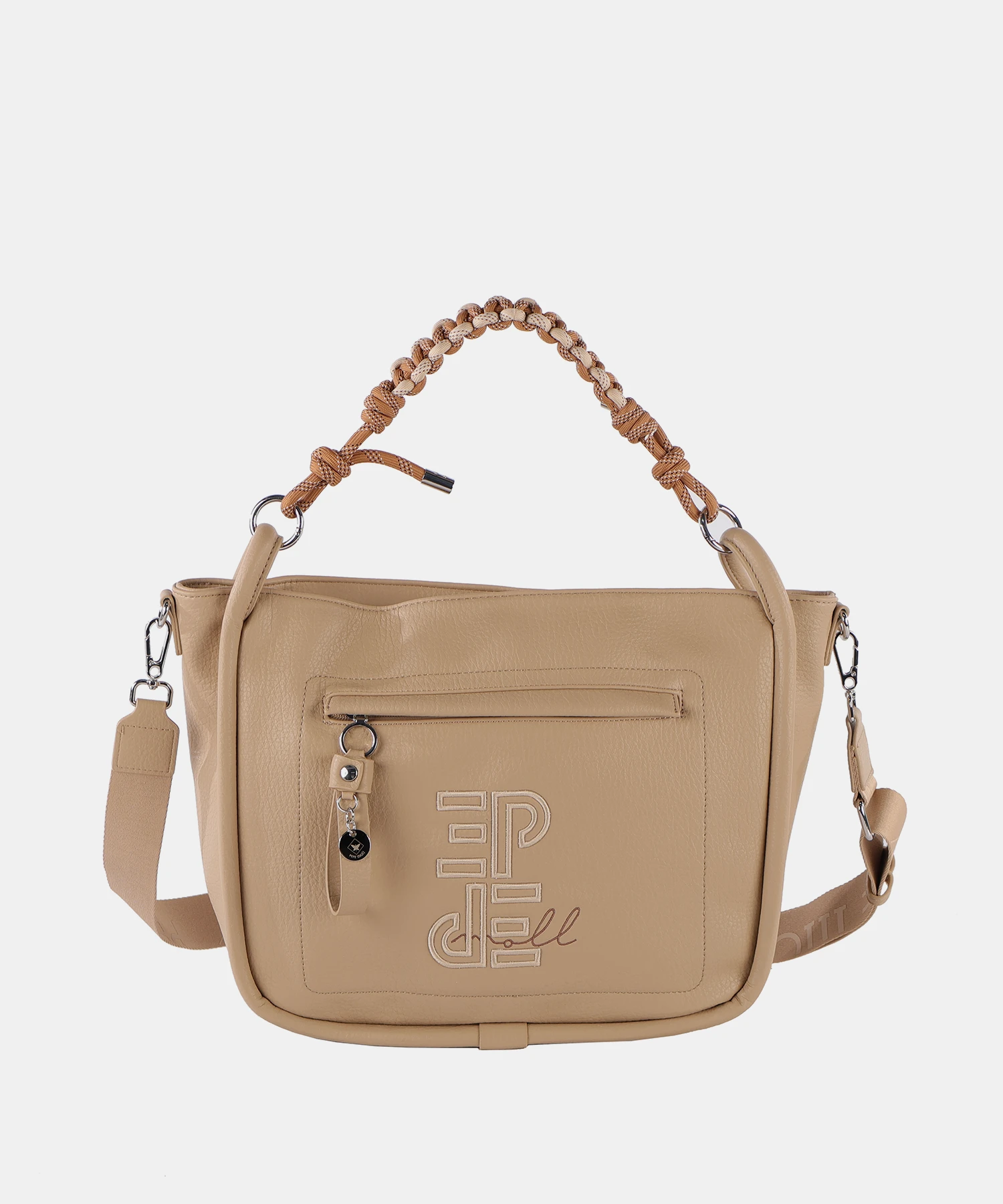 El bolso de hombro 261142 de Pepe Moll combina estilo contemporáneo y funcionalidad en un diseño pensado para el día a día. Su silueta amplia y relajada ofrece un equilibrio perfecto entre comodidad y personalidad, destacando por su original asa superior trenzada que aporta un toque distintivo al conjunto.