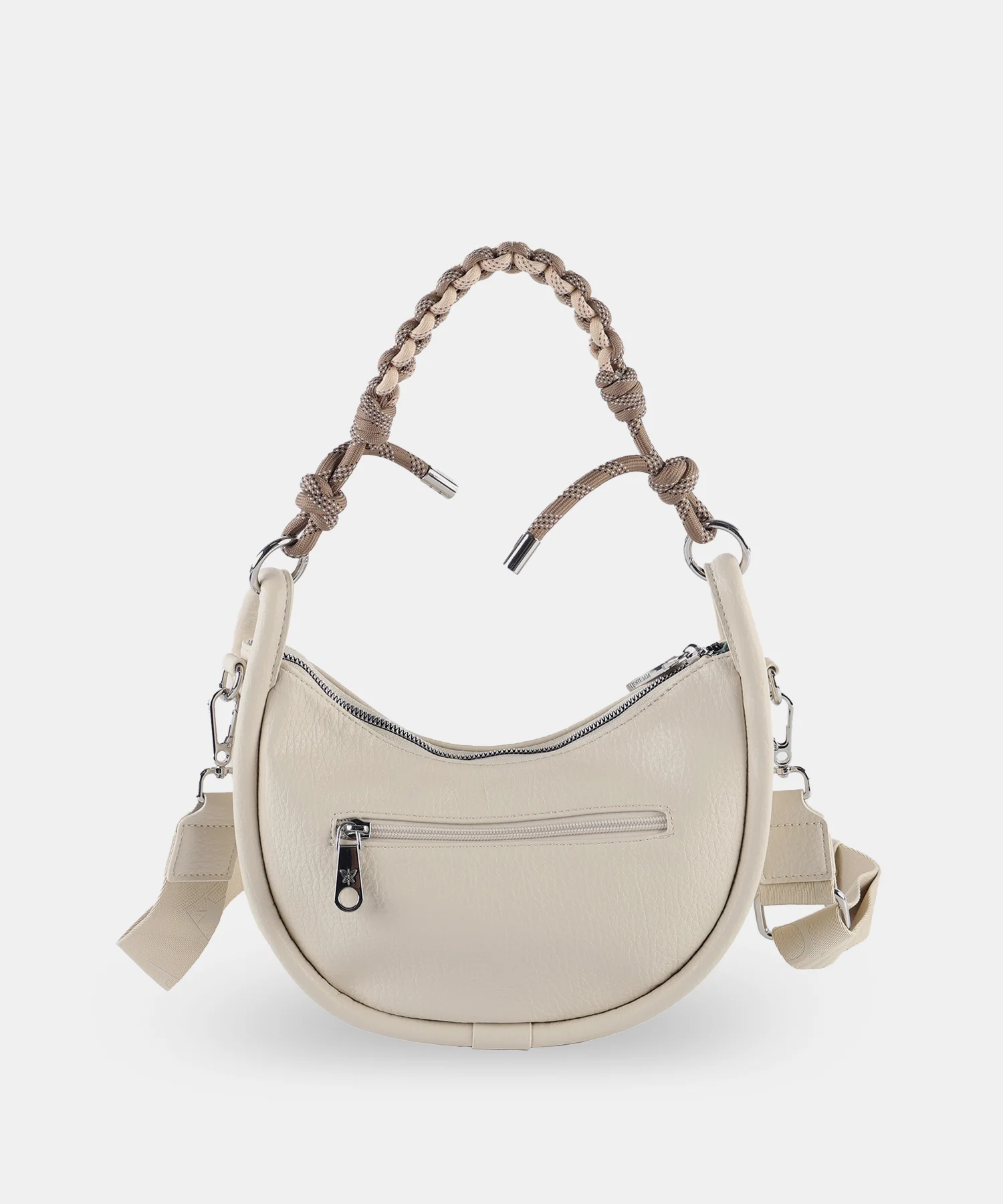 Este modelo combina estética y funcionalidad gracias a su estructura práctica y sus diferentes opciones de uso. Su asa superior con diseño trenzado aporta personalidad al bolso, mientras que la bandolera adicional permite llevarlo también cruzado o al hombro para mayor comodidad.