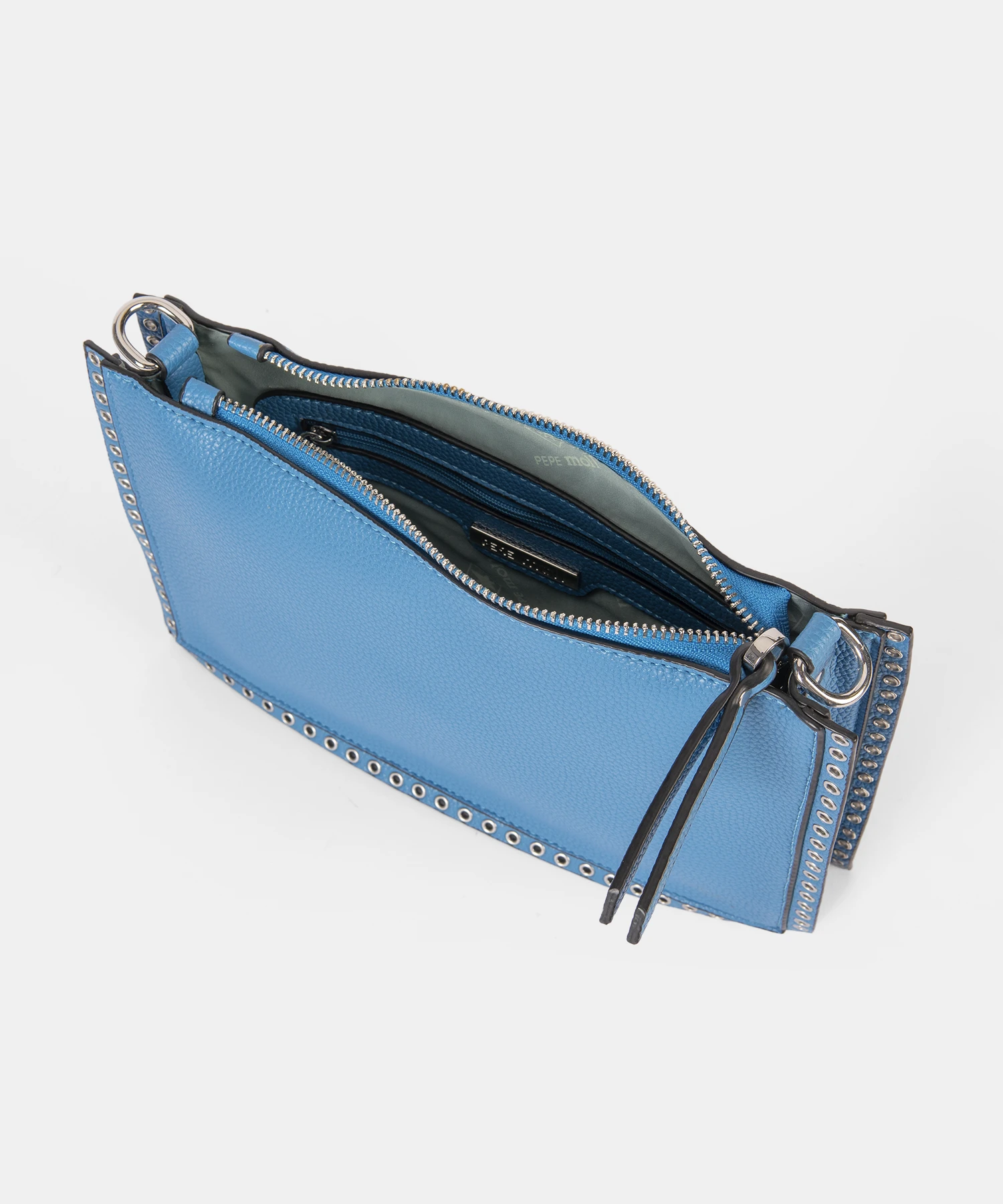 El bolso de mano 261252 de Pepe Moll presenta un diseño estructurado de líneas rectas y silueta rectangular que transmite una fuerte personalidad. El contorno está enmarcado con detalles metálicos que le otorgan un aire moderno y distintivo, convirtiéndolo en el accesorio ideal para transformar cualquier conjunto sencillo en una propuesta con carácter.