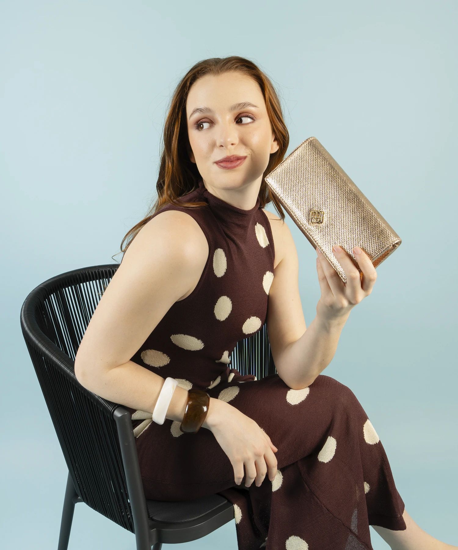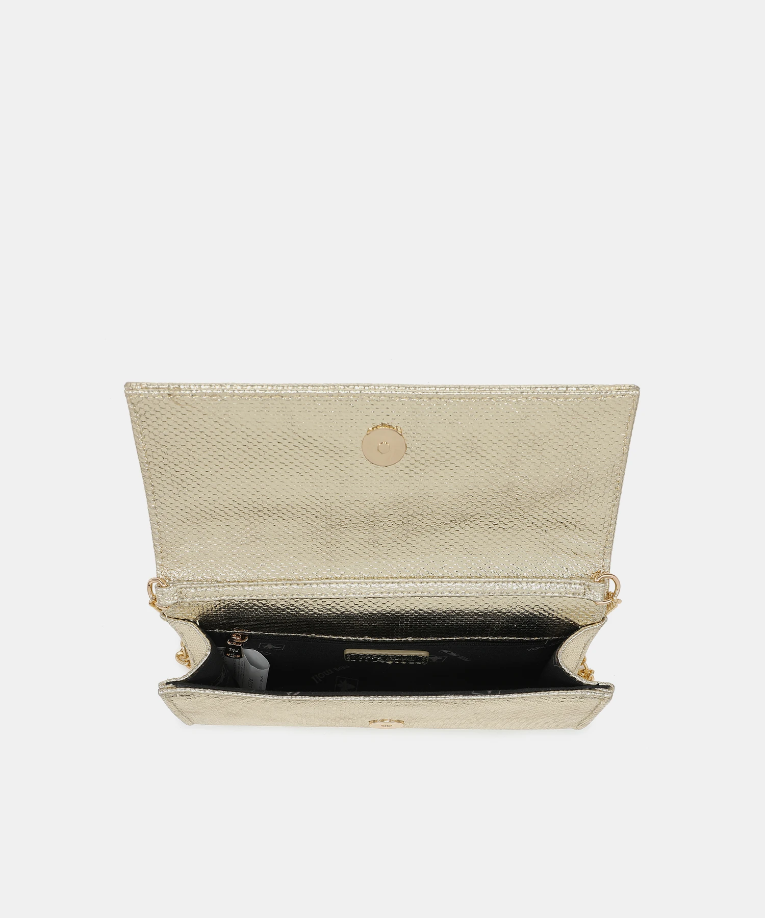 Su formato tipo sobre con solapa estructurada y cierre magnético mantiene tus imprescindibles bien protegidos. Además, incorpora cadena metálica para que puedas llevarlo al hombro o cruzado cuando prefieras tener las manos libres. Un bolso pensado para acompañarte con estilo y comodidad.