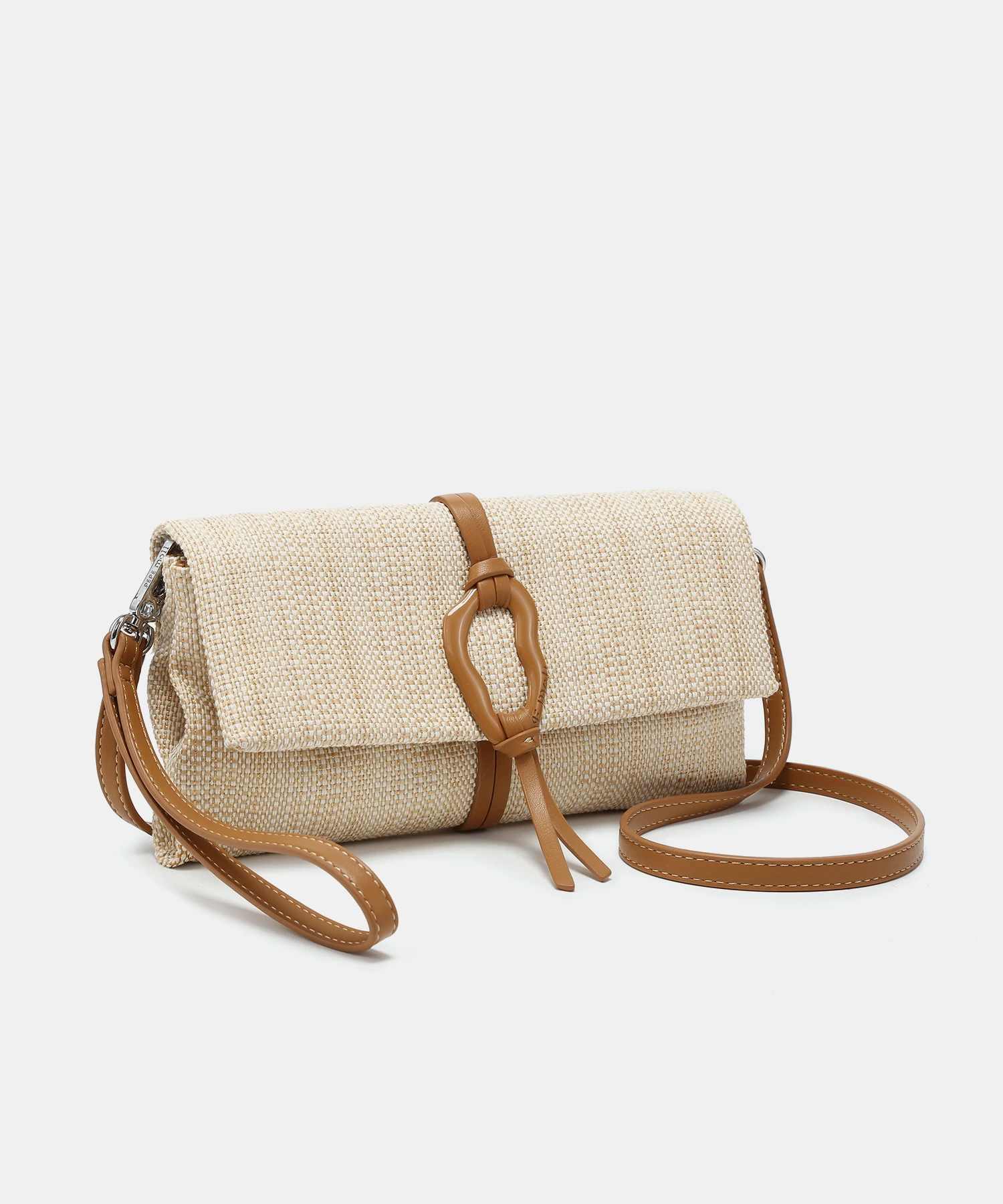 Destaca por su detalle frontal decorativo que añade personalidad al diseño, mientras que su formato compacto lo convierte en el complemento perfecto para llevar lo esencial con estilo. Además, este modelo ofrece varias formas de uso gracias a su bandolera extraíble y su correa de mano desmontable, permitiendo adaptarlo fácilmente a distintos momentos del día.