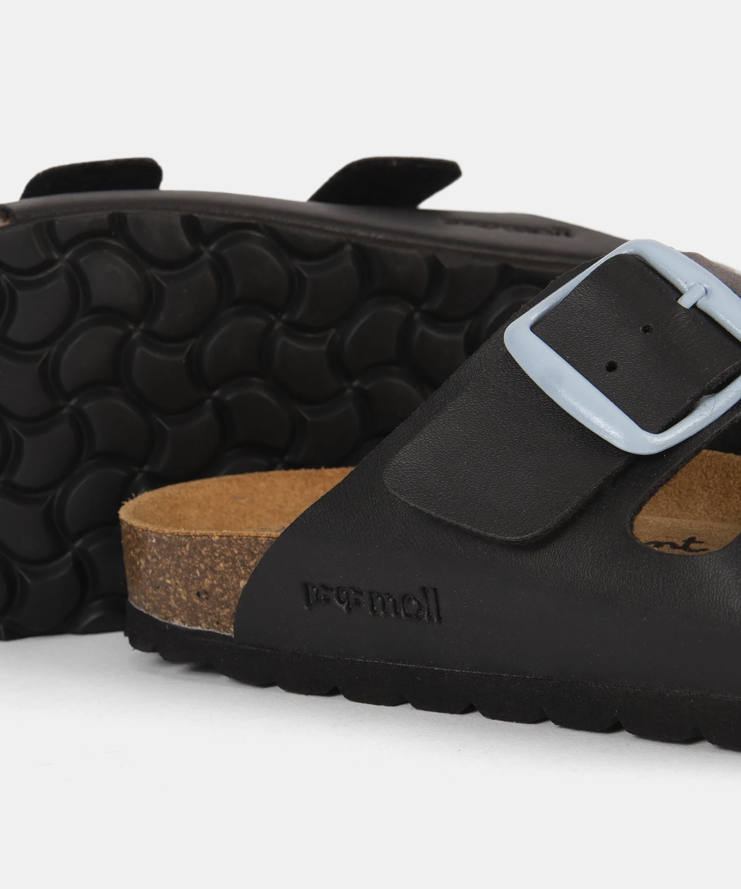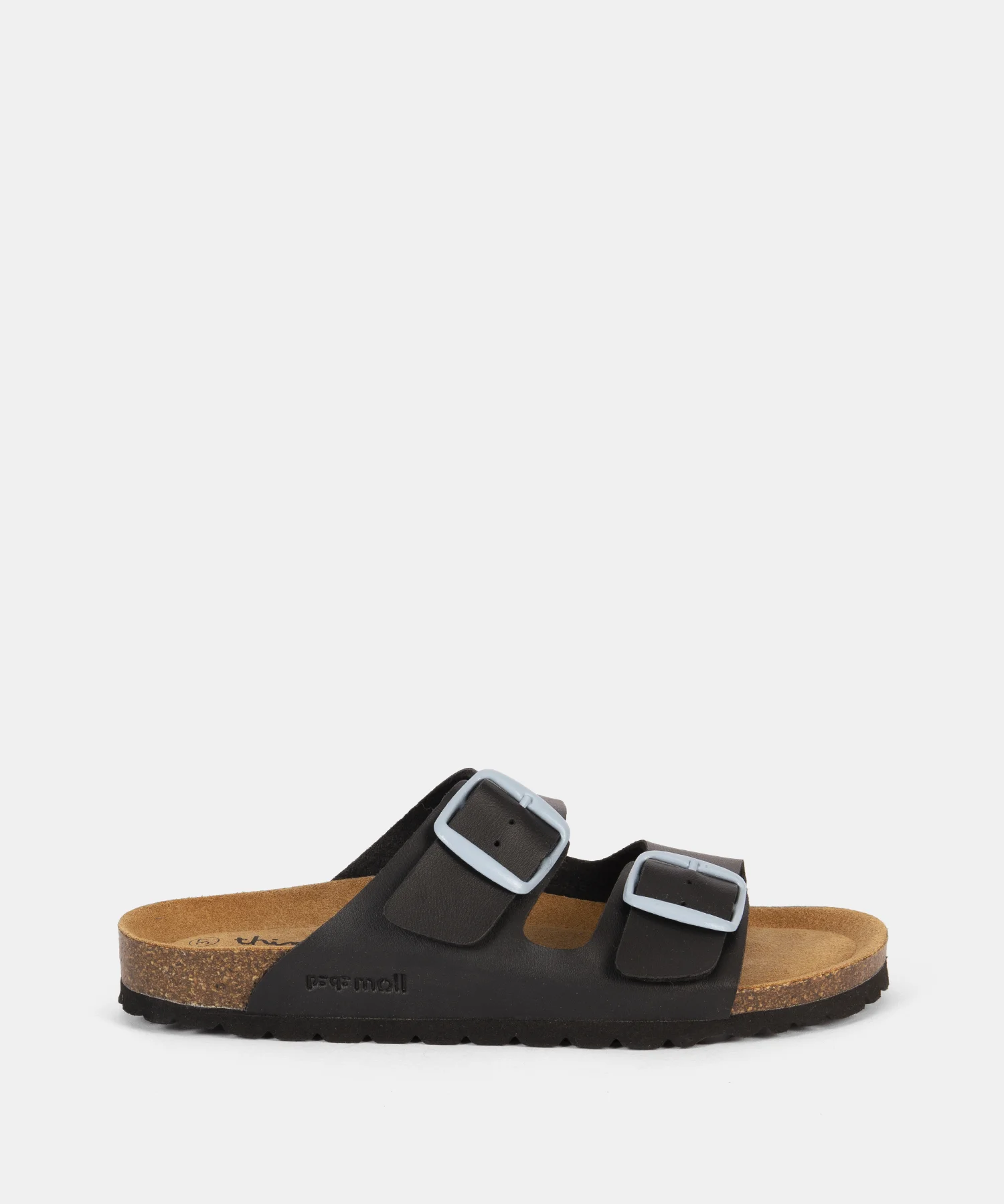 Las sandalias de mujer negras 261970 de Pepe Moll tienen un diseño tipo bio con una estética limpia, moderna y con mucha personalidad. La combinación del negro con las hebillas en azul claro crea un contraste muy llamativo y actual que transforma un básico de verano en una pieza mucho más especial. Es un modelo que mantiene esa comodidad que buscas en el día a día, pero con un punto visual diferente que hace que el look se vea más cuidado, más fresco y con un aire más actual desde el primer momento.