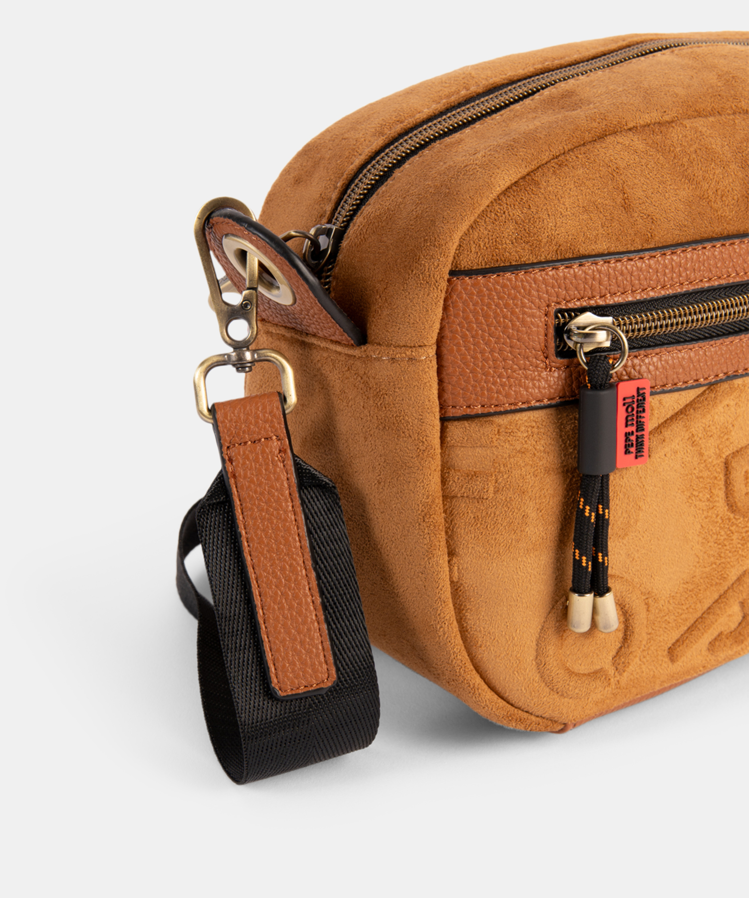 Incorpora una correa ancha ajustable que permite llevarlo al hombro o cruzado con total comodidad. El exterior destaca por su bolsillo frontal con cremallera y detalles como tiradores decorativos con cordón y terminales metálicos, que aportan un toque único. También incluye un bolsillo trasero con cremallera, ideal para tener a mano lo imprescindible.