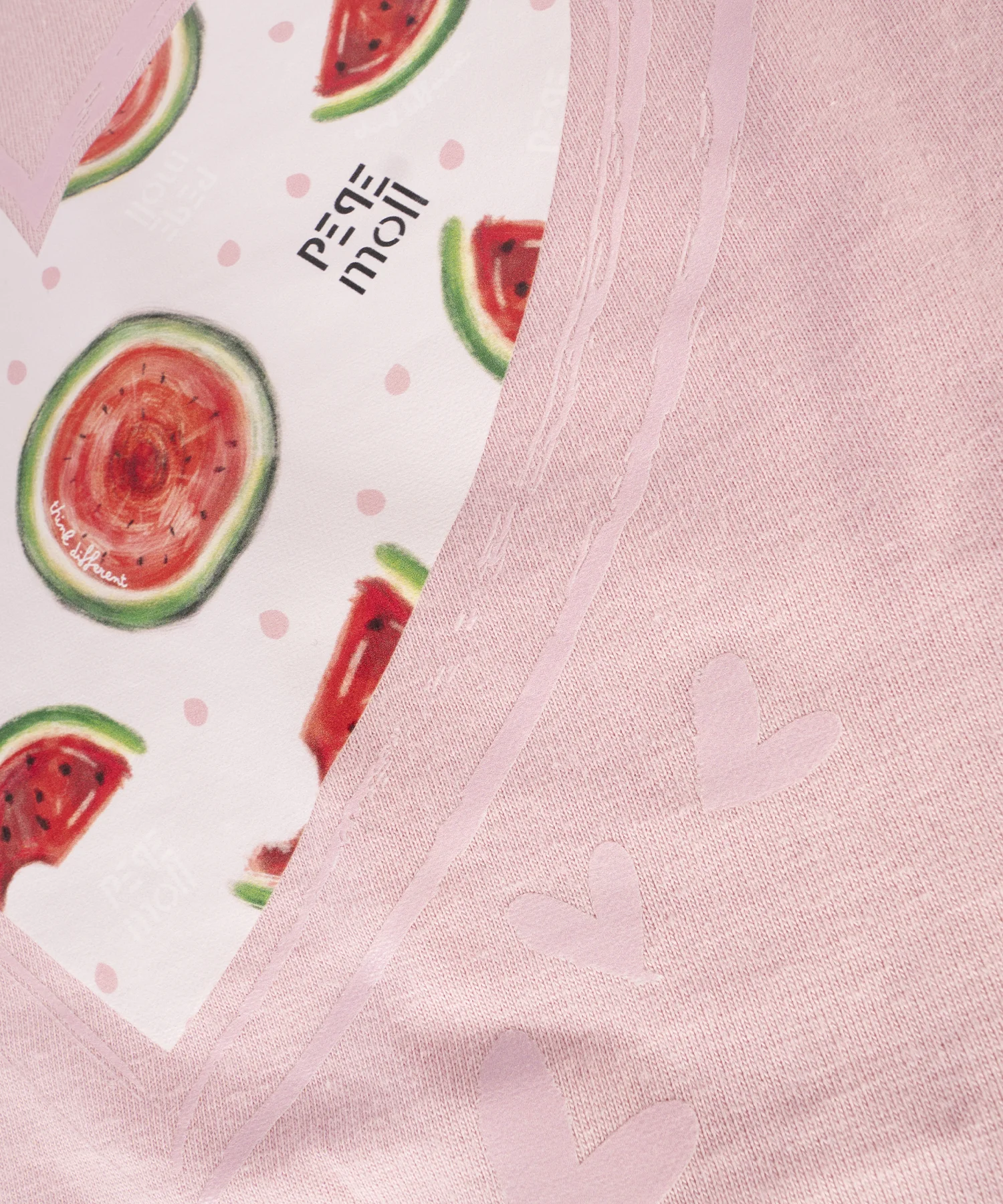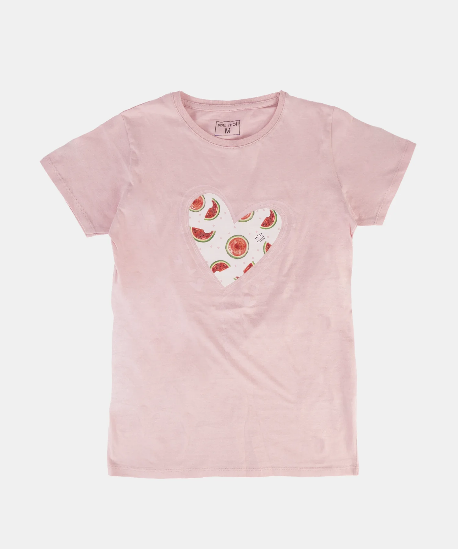 La camiseta rosa 261760 de Pepe Moll tiene ese aire fresco y divertido que apetece llevar cuando quieres dar un toque especial a un look sencillo. Su diseño en rosa suave se combina con un corazón central estampado con sandías, creando una imagen dulce, veraniega y muy reconocible que llena la prenda de personalidad. Es una camiseta con un punto desenfadado y femenino, perfecta para quienes buscan una prenda cómoda pero con un detalle visual que marque la diferencia desde el primer vistazo.