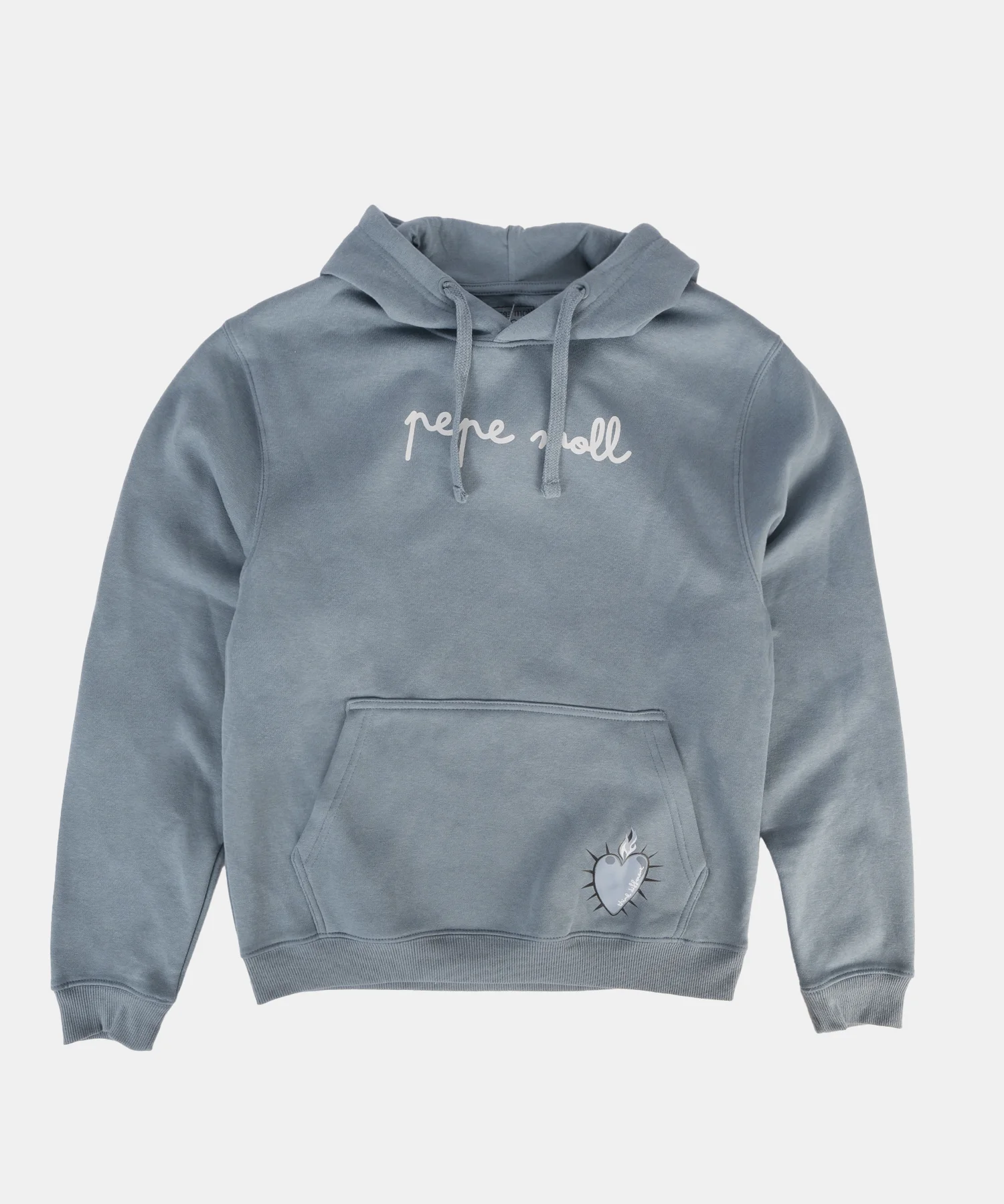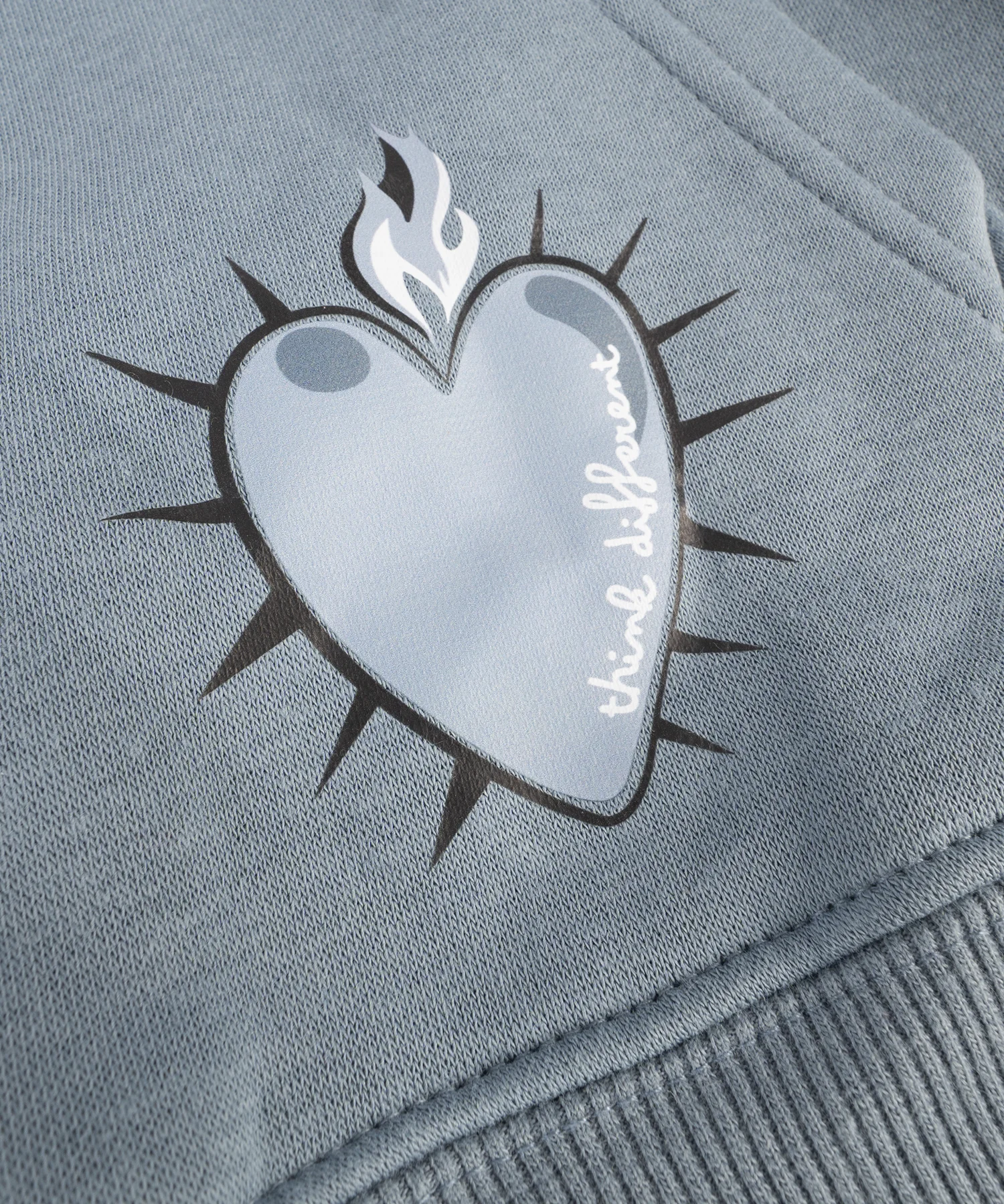 El bolsillo delantero y la capucha con cordones refuerzan su lado más práctico, pero lo que realmente le da personalidad es el pequeño corazón gráfico situado en la parte frontal, un detalle sutil que suma originalidad sin recargar la prenda. En la espalda, el diseño se mantiene más limpio, rematado con una etiqueta decorativa en el bajo que refuerza la identidad de la marca con un acabado cuidado.