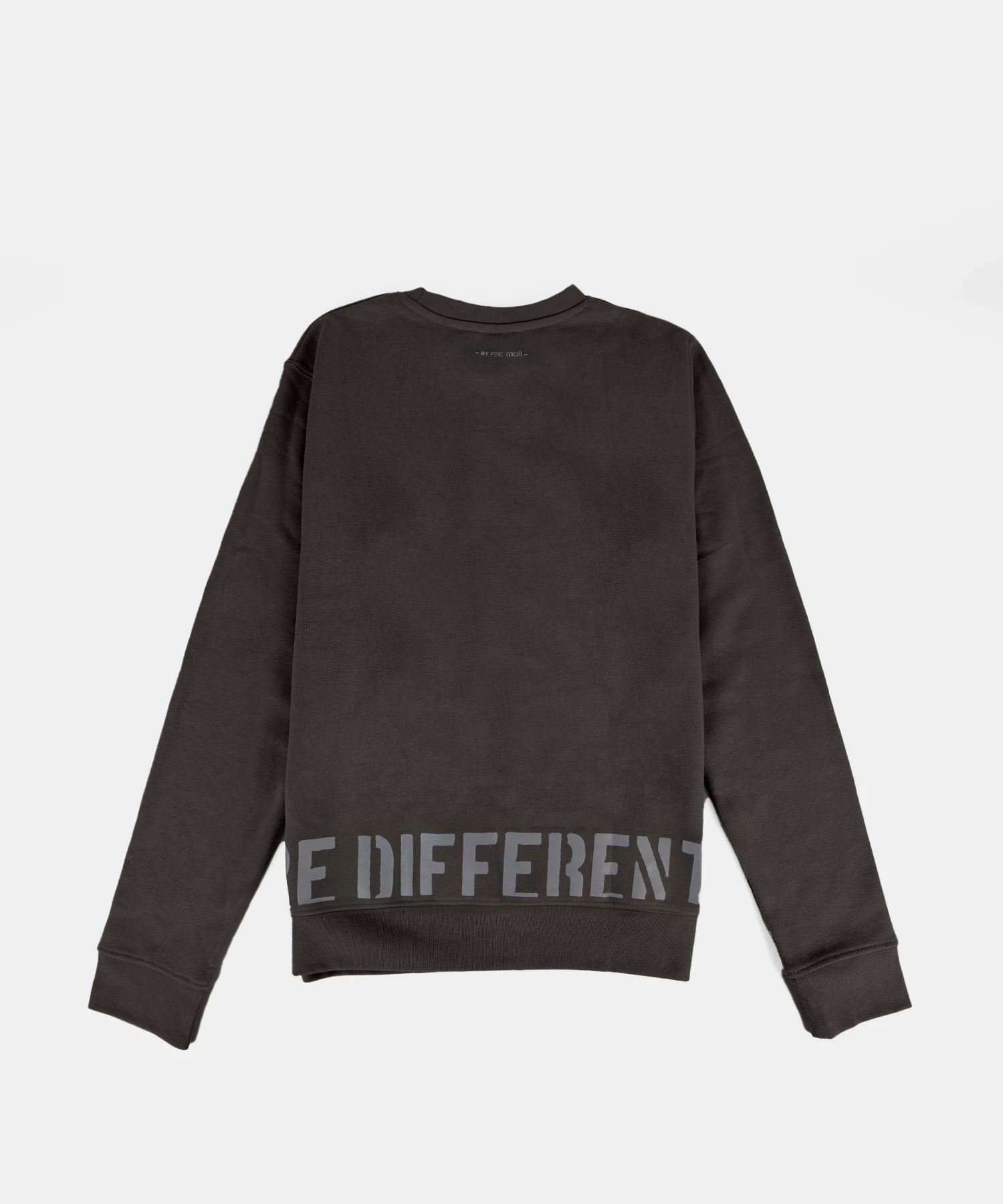 La sudadera negra 252898 de Pepe Moll apuesta por el diseño limpio y el mensaje directo. En la parte frontal, el lema “be ≠” aparece con un estilo sobrio y gráfico, como símbolo de autenticidad y carácter. Es ese detalle sutil que convierte una prenda básica en una declaración personal.